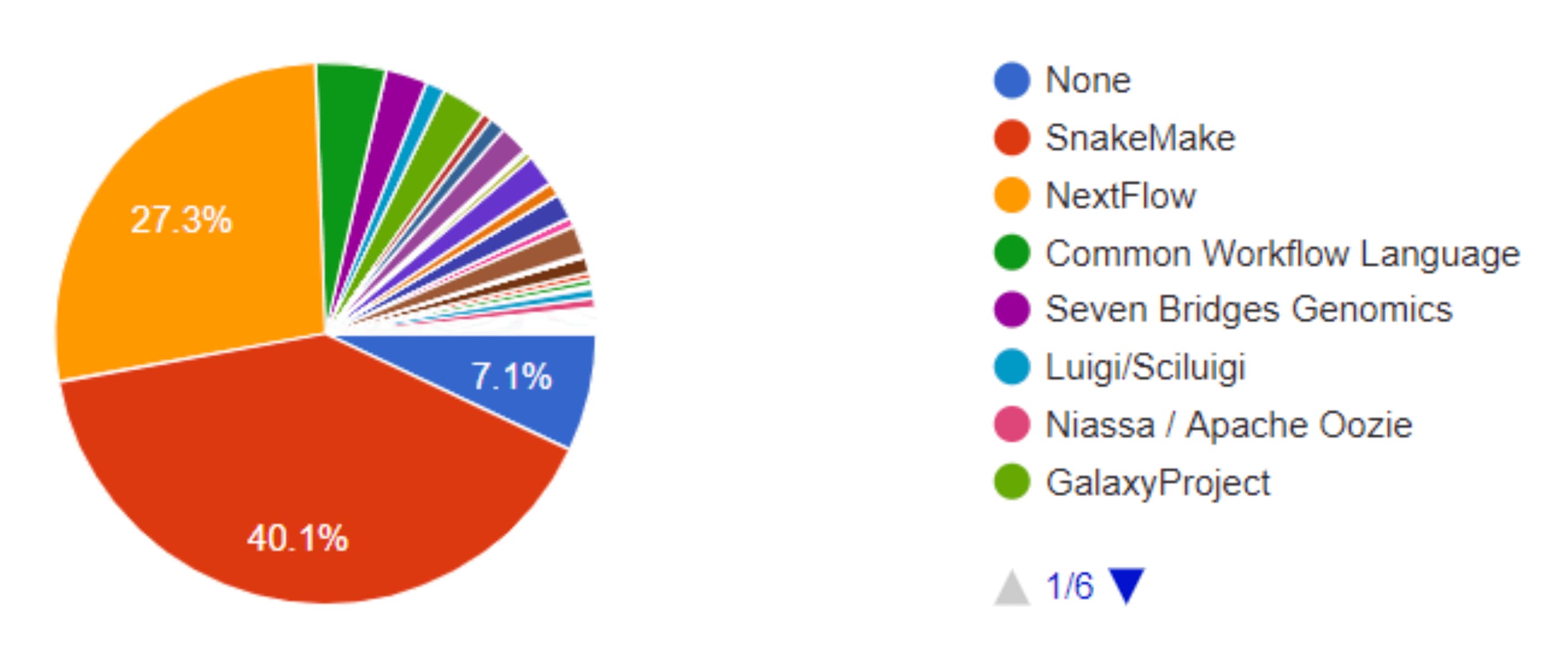 - Snakemake: Similar to nextflow. Snakemake now uses the cloud via kubernetes. I am told it's quite easy to set up.