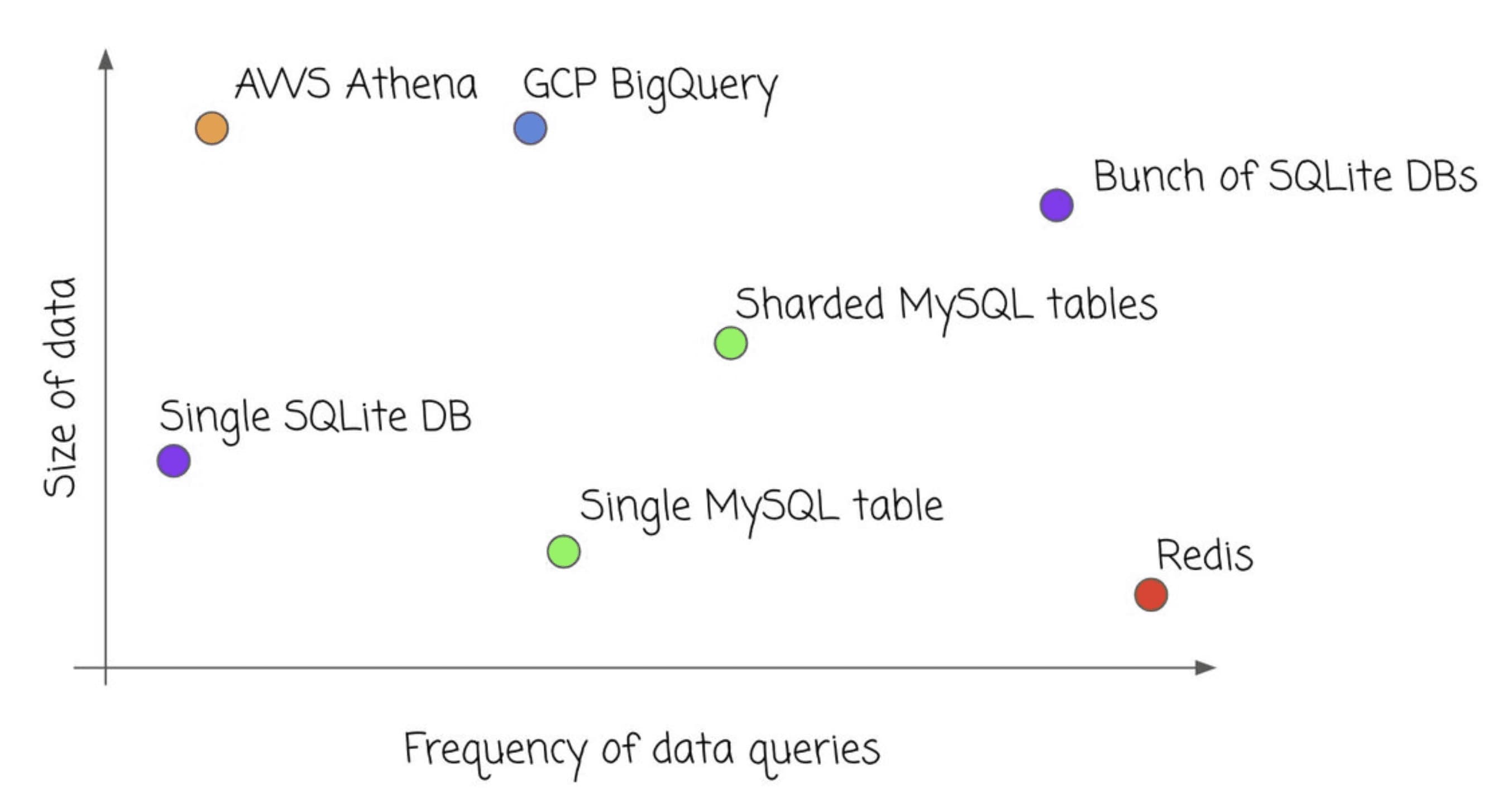 Apart from managing servers, one of the most annoying things about scaling up data is when you run out of disk space. Once your data no longer fits on a disk, everything gets 10 times more complicated: you have to think about how to distribute data across disks and it's a huge administative overhead. If you have ever had to shard data, I am sorry.